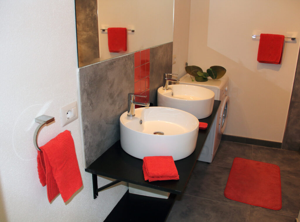 • SDB 2: douche-2 vasques-lave linge- sèche cheveux